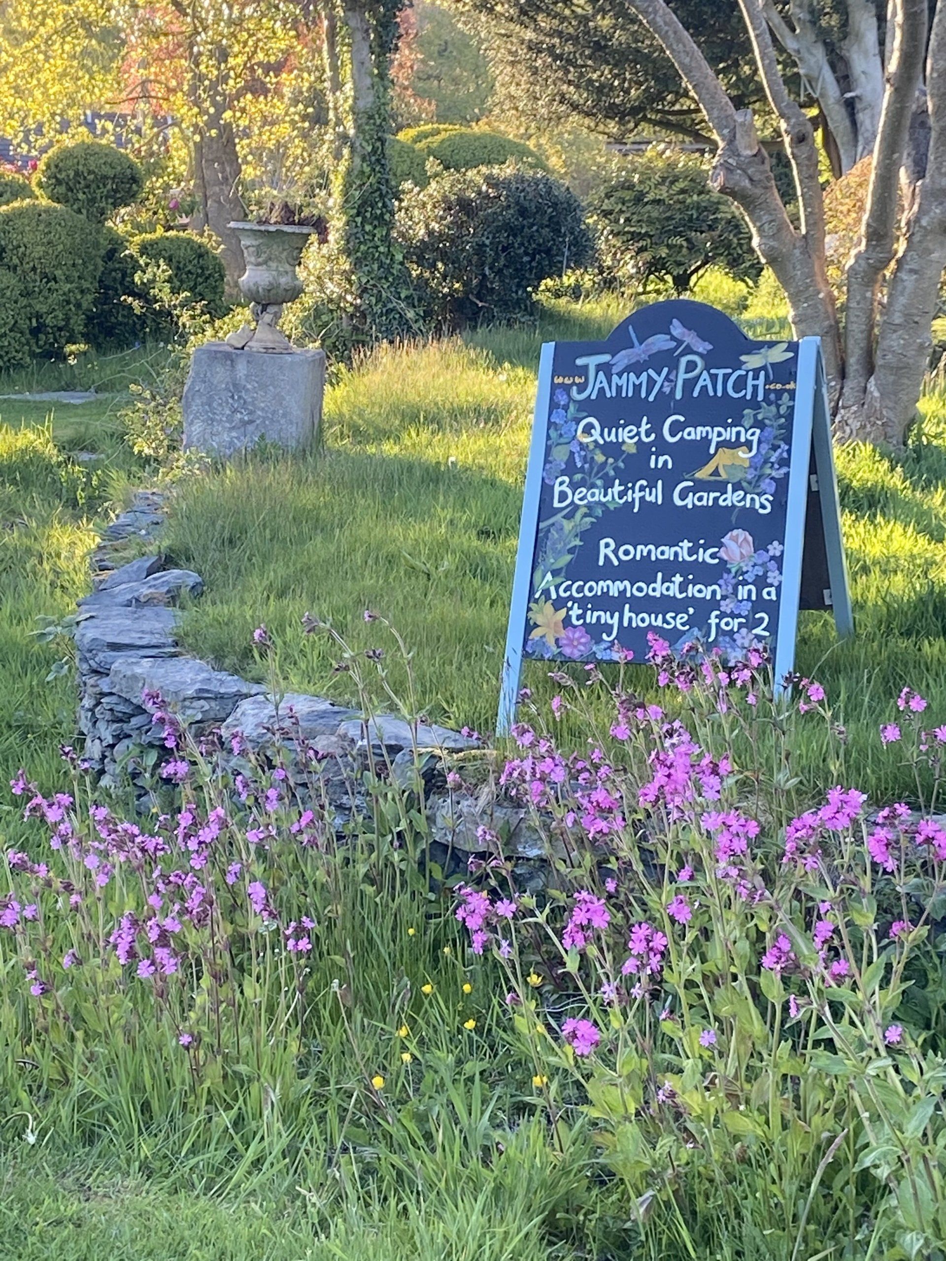 The Jammy Patch is home to 10 camping pitches, all of which offer space and privacy. The campsite is equipped with a beautifully converted Victorian eco-toilet and an open air jungle shower with hot water and bracing cold water option too. Shower surrounded by nature, beautiful views, and wildlife.